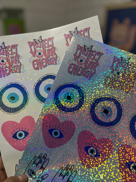 Plancha de stickers con laminado holográfico personalizados